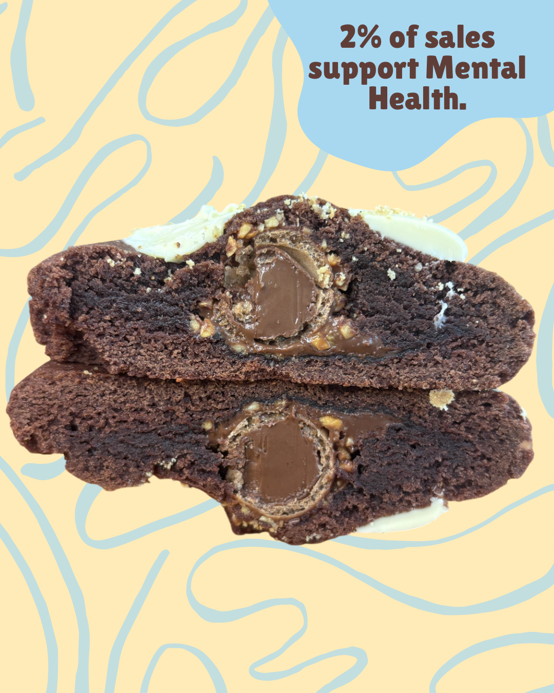 A chocolate lover’s treasure. This rich, cocoa-packed cookie hides a whole Ferrero Rocher and a molten hazelnut spread center, giving you a crisp edge, chewy bite, and a luxurious, nutty chocolate surprise in every mouthful. One bite and you’ll understand why it’s pure gold.